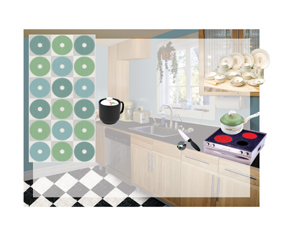 가족들이 모두 모이는 장소인 주방이라면 더욱 밝고 환한 컬러의 포인트타일로 하여 분위기를 환기시킬수 있다.