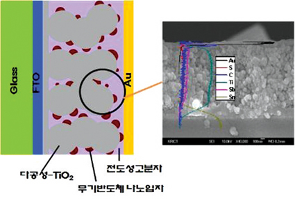 고효율 무기반도체박막태양전지의 장점과 저가의 유기태양전지의 장을 염료감응태양전지 구조에 도입하는 방법으로 저가이면서 내구성이 뛰어난 차세대 태양전지 제조기술을 개발했다고 지난달 7일 밝혔다.