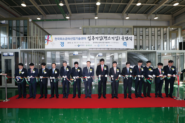 또 3시부터는 희소금속산업기술센터에서 입주기업(챔스기업) 출범식이 진행됐다. ‘챔스기업’이란 용어에는 센터 내에 전용 연구공간을 마련해 희소금속 기업의 연구소를 입주시키고, 실시간 밀착 지원을 통해 희소금속 전문기업, 챔피언기업으로 육성한다는 의미가 담겨 있다.