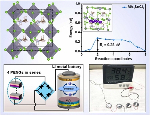 공동 연구팀은 이번 연구에서 주로 기계적 힘으로 에너지를 생산하는데 국한된 유/무기 페로브스카이트를 활용해 고출력 에너지를 생산함은 물론, 리튬 이차전지의 음극 재료로 사용해 저장능력을 획기적으로 향상시켰다.