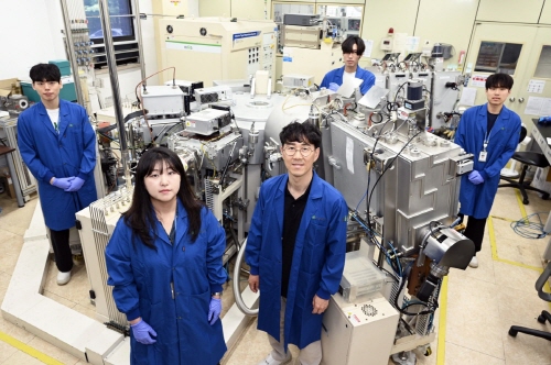 KIMS 연구팀이 수소 희석률 제어로 박막 결함을 최소화한 저온 공정 유연 광소자를 개발했다. (가운데 왼쪽이 논문 제1저자 정예지 석사과정 학생연구원, 오른쪽이 권정대 책임연구원). (자료제공: KIMS)