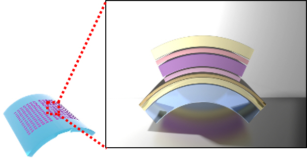 유연기판에서 제작한 광소자 및 단면 구조. (자료제공: KIMS)