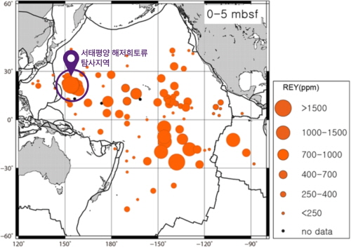 KIGAM은 지난 2020년부터 2023년까지 4년간의 기초조사를 통해 태평양 전역 159개 해역에서 희토류 농도 분포 데이터를 확보했다. 이 과정에서 대양 중심부 적도 인근과 서태평양 일부 고농도 희토류 부존 지역임을 과학적으로 확인했다.