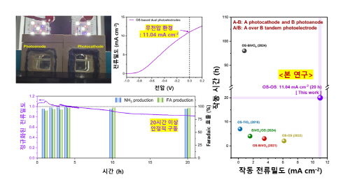 이번 연구는 암모니아뿐만 아니라 포름산 등 다양한 고부가가치 화학물질을 친환경적으로 생산할 수 있는 기술적 토대를 마련한 것으로, 향후 화학·에너지 산업 전반에 폭넓은 파급 효과가 기대된다. 특히 유기반도체 광전극의 내구성을 크게 향상시켜 대면적 태양광 기반 화학 공정으로의 확장 가능성도 높게 평가된다.
