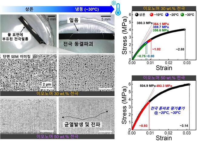 전극 內 이오노머 함량별 동파 현상 관찰 및 이에 따른 기계적 물성 평가. (자료제공: 한국연구재단)