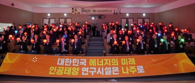 제3회 전남 에너지산업의 날 기념식에 참석한 에너지기업과 기관들이 인공태양 유치를 기원하며 퍼포먼스를 펼치고 있다. (자료제공: 나주시)