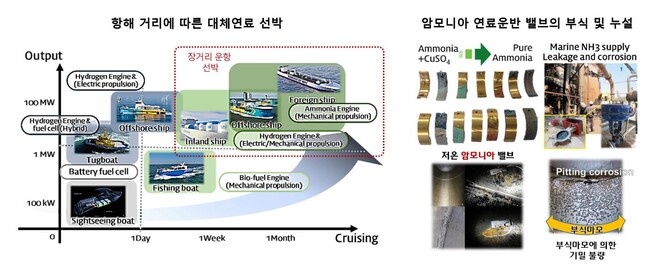 암모니아 추진선 및 연료 공급시스템의 기계부식 마모 불량에 따른 장거리 운항 대응 문제 현황. (자료제공: KIMS)