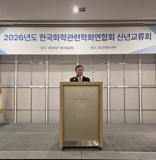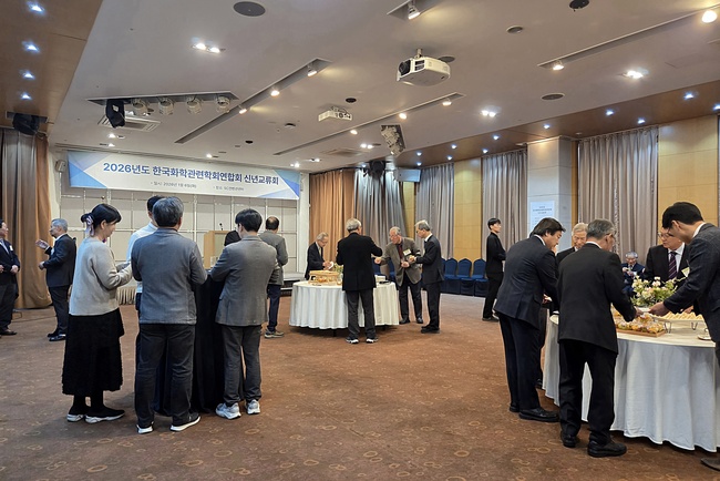 한국화학관련학회연합회(회장 신석민, 서울대학교 화학부 교수)는 지난 1월 6일 서울 한국과학기술회관 아나이스홀에서 ‘2026 한국화학관련학회연합회 신년교류회’를 개최했다. 이날 행사에는 6개 정회원 학회 학회장을 비롯해 산·학·연·관 화학 분야 원로 및 회원 학회 운영진과 회원 등 70여 명이 참석해 새해 인사를 나누고 화학 분야의 지속적인 발전과 협력을 다짐했다.