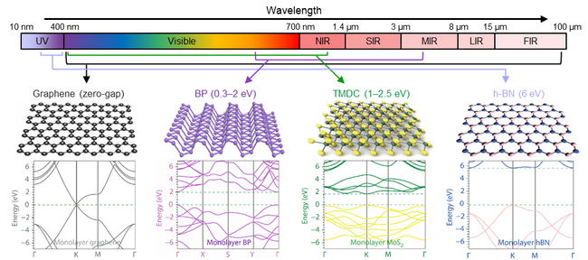 그림 1. 다양한 전기적 물성을 갖는 2차원 소재[10]