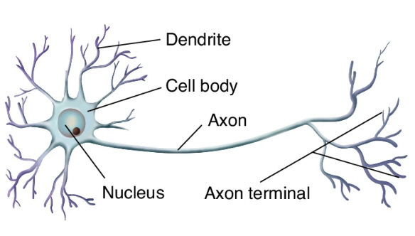 그림 3. (좌) 생물학적 뉴런의 구조, (우) 수학적으로 모델링한 뉴런의 구조[1]