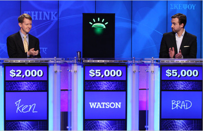 그림 1. (좌) IBM 딥블루와 가리 카스파로프의 체스 대국, (중) IBM 왓슨의 제퍼디! 출연, (우) 구글 딥마인드 알파고와 이세돌 九단의 바둑 대국 (소스: IBM, Google)