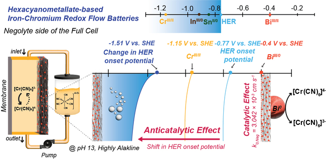 연구팀은 전극에 비스무트를 코팅하는 방식으로 이 두 가지 문제를 동시에 해결해 에너지 효율을 높였다. 비스무트가 크롬의 산화·환원 반응은 빠르게 만들어 주는 반면, 수소 발생 반응은 오히려 억제하는 ‘선택적 반응 조절자’ 역할을 하는 덕분이다.