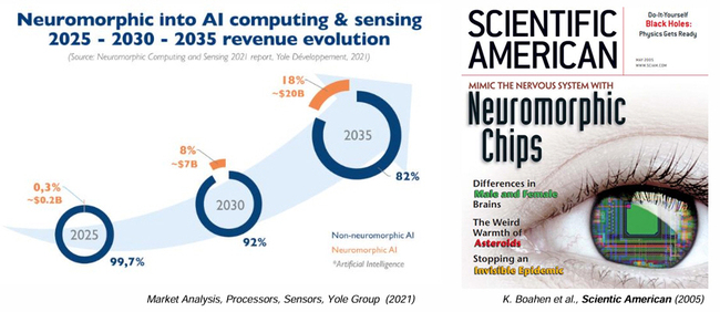 그림 1. 2025–2035년 인공지능 시장에서 뉴로모픽 AI 매출 비중과 성장 전망[1]