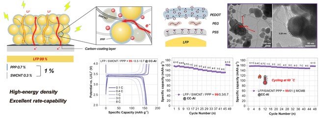 활성물질 함량 99%인 LFP 전극의 구조와 성능. (자료제공: UNIST)