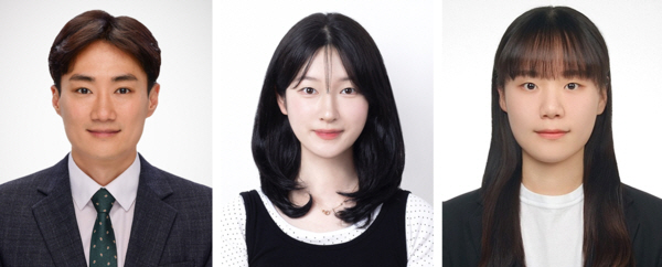 연구진 사진. 왼쪽부터 교신저자 한양대 엄영호 교수, 공동제1저자 한양대 김민지 석사, 최혜서 석사과정생. (자료제공: 한양대)