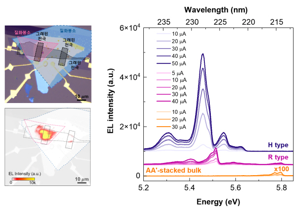 질화붕소(BN) 모아레 양자우물을 이용한 심자외선 LED 소자와 발광 특성. (자료제공: 과기정통부)