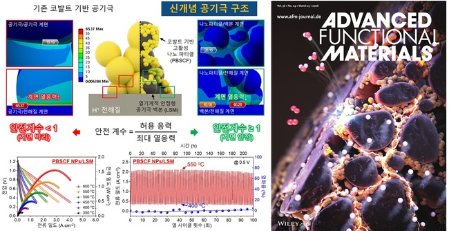 나아가 연구팀은 ANSYS 기반 열응력 해석(Thermal stress analysis)을 통해 LSM backbone이 공기극과 전해질 사이의 열팽창 불일치를 효과적으로 완화함을 검증했다. 특히, 열응력에 대한 공기극/전해질 계면의 안정성 지표로 안전 계수(Safety factor) 개념을 새롭게 도입해, 온도 변화에도 기계적인 결함 발생 없이 안정적인 구동이 가능한 최적의 소재 조합 및 미세구조 설계에 대한 실질적인 설계 가이드라인도 함께 제시했다.