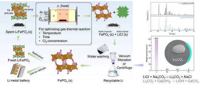 - 차세대 LFP 배터리 폐양극재에서 리튬 전환율 95%, 순도 97% 이상 달성