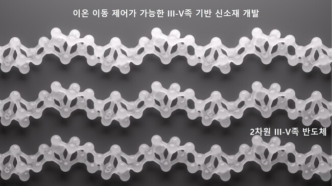 기존 III-V족 화합물 반도체는 전자의 빠른 이동은 가능하지만, 이온이 움직일 공간은 거의 없어 새로운 전자 기능 구현에는 한계가 있었다. 심우영 교수는 양이온 유택시(cation-eutaxy) 구조(기존 반도체와 달리 양이온이 전기장에 의해 이동할 수 있는 구조)의 새로운 반도체 설계 개념을 제안하고, 일부 원소만 선택적으로 제거하는 토포케미컬 에칭(Topochemical Etching)을 이용하여 이온을 이동할 수 있게 하는 반데르발스 간격(분자나 원자가 서로 강하게 결합하지 않고 약하게 끌릴 때 유지되는 평균 거리로, 이온이 이 공간을 이동하는 과정에서 전기적 저항 상태의 변화 발생)을 형성하였다.