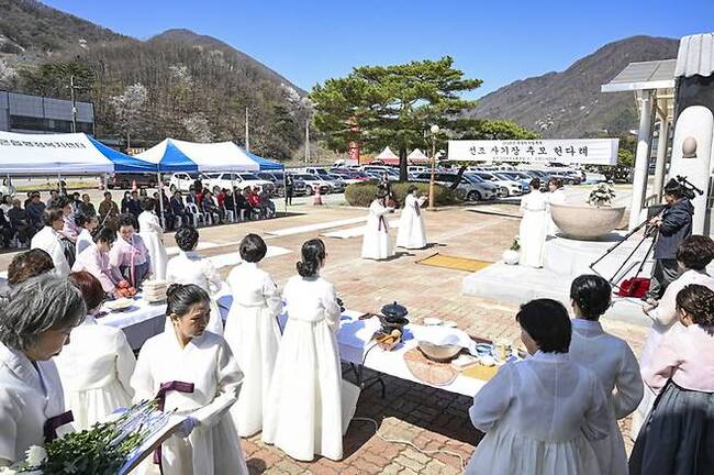 문경시는 지난 4월 8일 문경읍 진안리 선조도공 추모비에서 ‘2026 문경찻사발축제’의 성공적인 개최와 지역 도자기산업 발전을 염원하는 추모제를 거행했다. (자료제공: 문경시)
