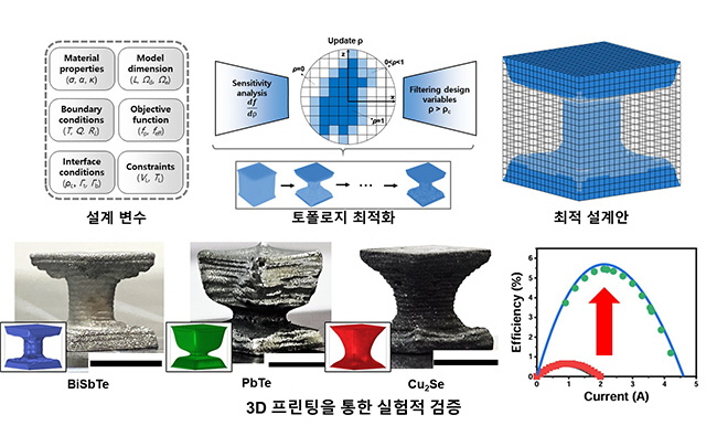 열전 소자의 토폴로지 최적화 및 3D 프린팅 모식도. (자료제공: 포스텍)
