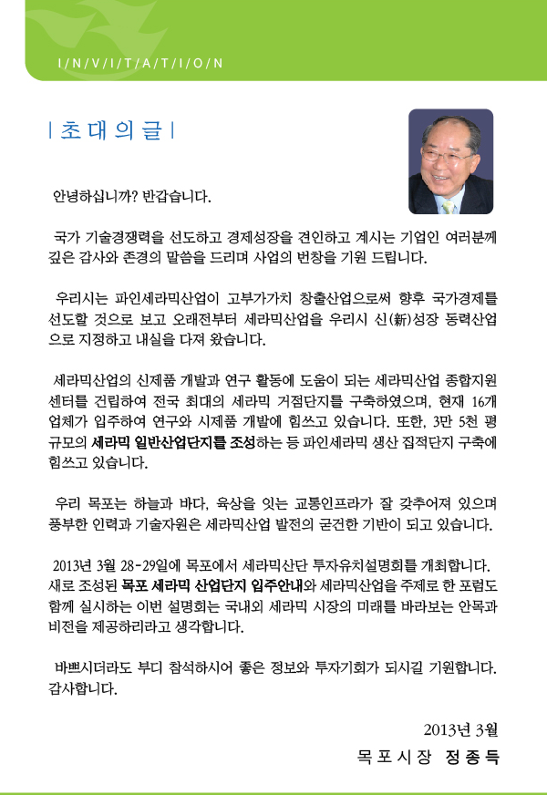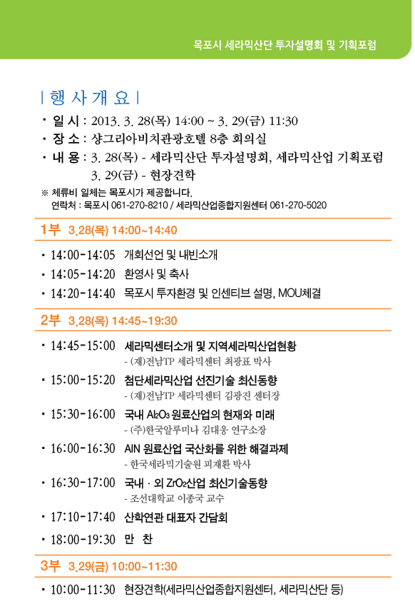 목포시 세라믹산단 투자설명회 및 기획포럼 초청 안내
