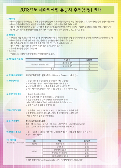2013년도 세라믹산업 유공자 추천(신청) 안내