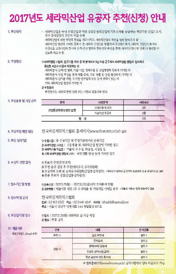 17년도 세라믹 유공자 정부포상 안내