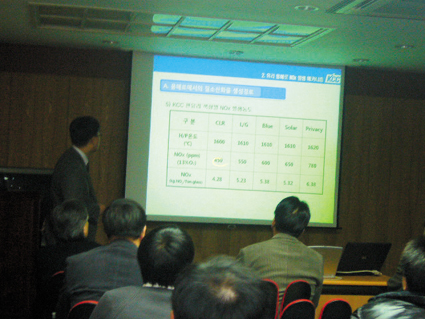 이명훈 과장의 발표 이후 내빈들의 열띤 질문과 건의들이 이어진 후 KCC의 김선진 차장은 ‘유리응용로에서의 Denox기술’에 대하여 발표해 향후 유리용융기술연구회의 행보에 큰 희망을 실어주었다.
