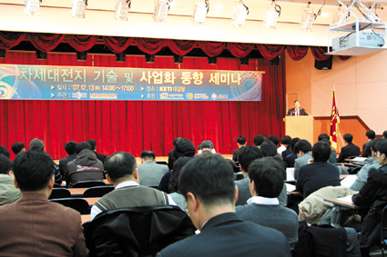 12월 13일 전자부품연구원 대강당에서 Mobile Energy 시대의 동력원으로서 신산업 창출을 견인 하는 산업자원부의 차세대 성장동력사업중 하나인 ‘차세대전지 기술 및 사업화 동향 세미나’를 개최하였다. 차세대 전지는 공해물질을 사용하는 저밀도 전지를 대체하고 국제적인 환경규제에 대응할 수 있는 친환경 고부가치 에너지 산업으로, 차세대전지는 전자·정보 기기의 Mobile화에 크게 기여해 왔으며, 향후에는 고성능전지로 새로운 시장 창출을 주도할 것으로 기대된다.