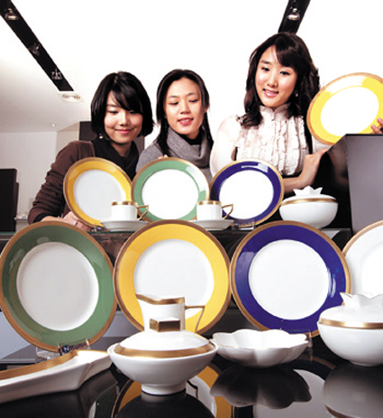 노벨 만찬 식기는 노벨재단의 상징 컬러를 이용해 밴드 형식으로 깔끔하게 처리했고 고급스러운 마감을 위해 골드를 여러 번 입히는 작업을 거쳤다.