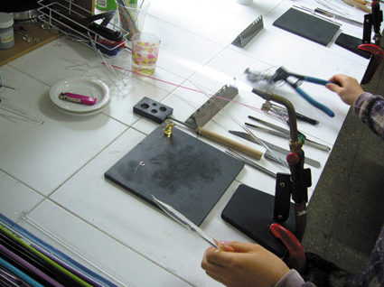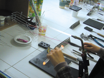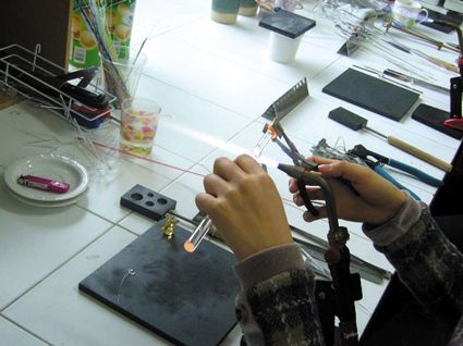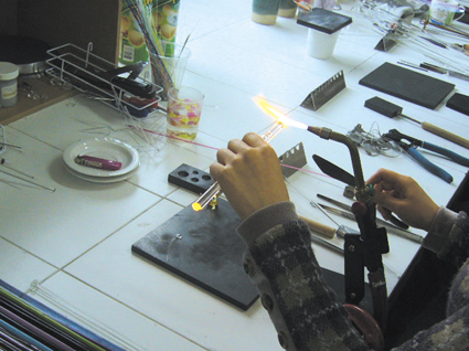 “고온의 불과 위험한 도구들이 있지만 7세부터 남녀노소 누구나 수강은 가능합니다. 뜨거운 불앞에 앉아 유리를 가지고 하트나 물고기, 나뭇잎 모양을 펜던트로 만들고 핸드폰줄 등. 여러 다양한 작업을 하고 있는 수강생들을 보면 저절로 미소가 얼굴에 번진다”는 부천유리공방의 젊은 작가들.