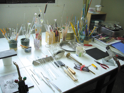 6 _ 다양한 유리작품들을 제작할 수 있는 갖가지 도구들 7 _ 작은 기물들을 소성 할 수 있는 작업실 내의 가마