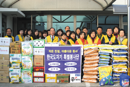 한국도자기의 민경혁 상무는 “불우한 이웃들은 우리 주위에서 항상 소외되고 있으며 특히 피부로 느끼는 정도가 더 강한 겨울철, 이들에게 조금이나마 도움과 위로를 주고자 하는 마음에서 사내동호회의 자발적인 참여와 회사의 지원으로 불우이웃돕기에 나서고 있다”고 말했다.