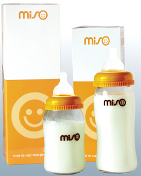 ‘미소내열유리젖병’은 내열성이 강화되어 끓는 물에 넣어 열소독을 해도 변형이 없고, 아이들에게 해로운 환경호르몬 등 유해물질이 전혀 나오지 않으며, 분유 온도 유지에도 탁월한 성능을 지니고 있다.