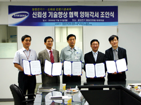 요업기술원(원장직무대행 김광진)과 삼성전기가 지난달 21일 ‘신뢰성 기술향상 협력 양해각서 조인식’을 갖고 국가 부품소재 및 삼성전기 제품의 신뢰성 향상을 위한 본격적인 협력에 들어갔다.