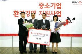 웅진세라믹(주)이 지난달 8일 대한상의와 HSBC은행이 공동주최한 ‘중소기업 환경경영 지원사업 시상식’에서 대상을 수상했다.