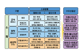 특히 국내 생산 규모에 있어서 금속소재는 한해 60조원, 화학소재는 한해 84조원을 생산 국제적인 경쟁력을 확보하고 있는 것으로 나타났다. 하지만 세라믹소재의 경우 국내 총생산이 7조원 미만에 그쳐 이에 대책마련이 요구되고 있다.