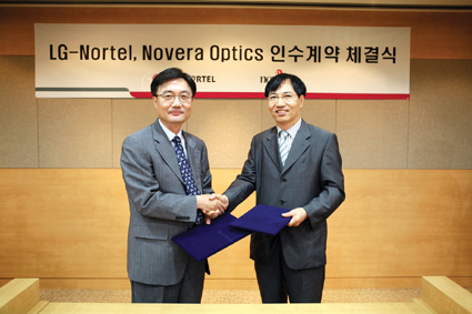 LG-NORTEL.com, CEO 이재령)은 지난달 5일 광가입자망(FTTx) 관련 WDM―PON(Wavelength Division Multiplexing Passive Optical Network: 파장분할수동형광네트워크) 원천기술 보유업체인 노베라옵틱스(www.noveraoptics.com)와 2,500만 달러 규모의 인수 계약을 최종 완료했다고 밝혔다. LG-Nortel이 이번에 인수하는 노베라옵틱스는 1999년 미국 실리콘밸리에 설립된 한국계 광통신 기술 벤처로 현재 IPTV, 인터넷전화(VoIP) 서비스 등의 안정적인 공급을 위한 FTTH 최적기술로 꼽히는 WDM-PON의 원천기술 보유업체다. LG-Nortel은 이미 수년 전부터 노베라옵틱스와 함께 차세대 FTTx 기술인 WDM-PON을 지원하는 장비의 개발 및 공급을 준비해 온 바 있다.