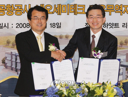 화합물반도체 및 태양전지용 실리콘 소재 전문업체인 네오세미테크(대표 오명환)가 지난달 18일 인천국제공항공사(사장직무대행 정덕모)와 인천공항 자유무역지역 내에 잉곳 및 웨이퍼 생산시설을 건립하기 위한 실시협약을 체결했다고 발표했다. 회사 측에 따르면 자유무역지역 내 5만2659㎡의 공장터에 1단계로 2009년까지 약 300㎿의 생산시설을 확보한 뒤 2010년까지 500㎿ 설비를 추가로 들여와 연산 총 800㎿ 규모의 잉곳ㆍ웨이퍼 생산공장을 완공할 계획으로 2200억원이 투입될 예정이다.