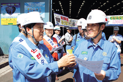 포스코의 파트너사 동일기업(사장 김점조)은 지난 여름 장마와 폭염으로 마음이 느슨해진 직원들을 위해 ‘혹서기 안전캠페인’을 전개했다. 이번 행사는 2근 출근 직원들을 대상으로 ‘안전피켓, 안전유인물, 안전사고 유형 유인물’을 배포하고 임원들이 직접 현장에 나와 안전작업을 당부했다. 이와 함께 영양제와 음료수를 나눠 주면서 ‘안전사고 없는 안전한 일터’를 위해 노력해 줄 것을 당부했다. 안전캠페인은 포항제철소 후판제품공장·1후판공장·2후판공장에서 총 3회에 걸쳐 전개됐다. 동일기업은 이날 행사 외에도 삼복더위 속에 고생했던 현장직원들에게 삼계탕과 수박을 대접하는 등 직원들의 무더웠던 여름날의 마무리 건강을 챙기며 새로운 가을맞이를 하고 있다.