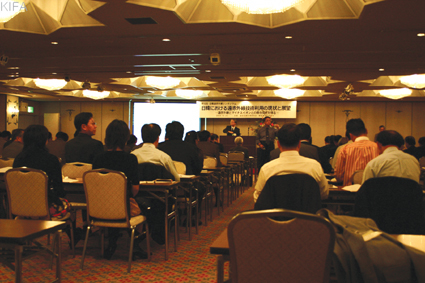 두 번째 강연에서 일본원적외선응용연구회 에가와 요시노부 전무이사가 ‘일본에서의 원적외선섬유제품의 품질인정기준’ 등에 대해 일