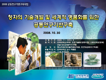 강진도예연구소는 최근 지식경제부가 시행하고 있는 2008년 공동연구기반구축사업의 일환으로 마련된 ‘청자의 기술개발 및 세계적 명품화를 위한 공동연구기반구축사업’의 주관기관으로 선정됐다고 밝혔다.
