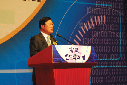 지경부와 한국반도체산업협회는 이날 오후 서울 여의도 63시티에서 이윤호 지경부 장관, 권오현 반도체산업협회장, 김종갑 하이닉스 사장 등 반도체 산학연관 관계자 500여명이 참석한 가운데 제1회 반도체의 날 기념행사를 갖고, 반도체 산업발전 유공자 36명을 시상했다.