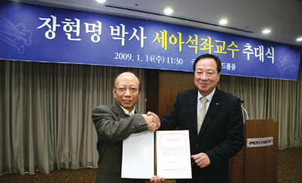 포스텍(POSTECH)은 신소재공학과 장현명교수를 제3대 세아석좌교수로 선임하고 추대식을 가졌다.