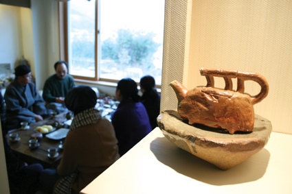 도예가 장기덕의 청봉요는 갤러리 및 도예체험교실, 전통다실 등 다른 요장과 달리 비교적 탄탄하게 구성돼 있다. 우직해 보이는 첫인상의 그는 노동의 반복을 통해 몸으로 깨우치게 된 감각으로 청봉요를 3대째 이어오고 있다. 그래서일까. 도예에 대한 그 열정과 뜻은 보다 완숙해보인다. 마지막으로 찾은 요장은 우곡요로 도예가 이종태의 다실. 살림집 내부에 자리한 다실은 조명의 빛을 받아 더욱 빛나는 찻그릇들로 섬세한 분위기다. 그의 다관은 수구에 홈을 내어 물끊김이 깔끔한 게 특징. 정성과 철학이 담긴 다관은 실용신안 특허로 그 결실을 맺었다.