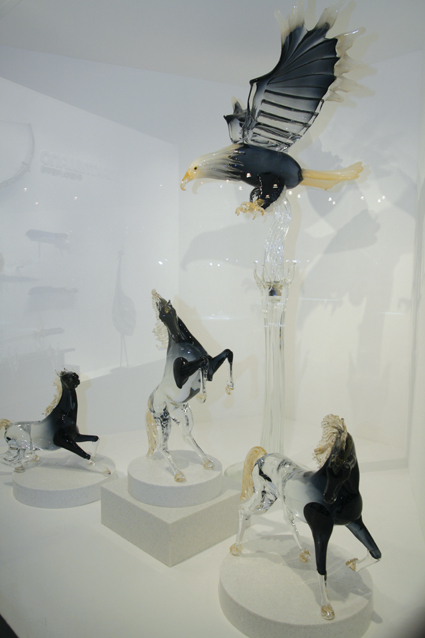 특히 용해로에 녹아 있는 유리덩어리를 계속 말아가며 만드는 ‘솔리드(Solid)기법’을 이용한 이탈리아 자네티 무라노 공방에서 제작한 ‘독수리와 말’은 그 자태와 사실적인 표현으로 보는 이들의 눈길을 사로잡았다. 이밖에 거울미로, 거울방, 다면경룸 등 역시 관람객의 호기심을 유발하며 높은 관심을 받았다.