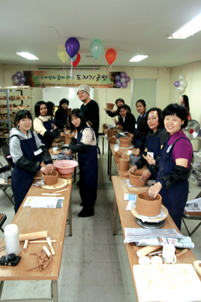 <광주여성의전화> 교육실에서 열리는 수업은 매주 화요일마다 화기애애한 분위기 속에 열린다. 지난 3월부터 수업을 시작해, 익숙치 않은 흙을 다루느라 아직은 서툰 모습이지만 나라마다 요리법이 다르듯 각양각색의 아이디어와 스타일로 만들어내곤 한다. 필리핀에서 온 멀씨는 좋아하는 식물을 기를 화분만들기에 한창으로 제법 능숙하게 코일을 쌓아올린다. 12년 전에 한국에 왔다는 그녀는 어릴 때부터 자연과 함께 자라온 환경때문인지 흙의 물성을 이용한 창작경험이 좋아 주위의 칭찬이 자자하다. 태국에서 온 벤시는 화분을 주제로 진행하고 있는 수업에서 무엇을 만드냐는 질문에 머그잔을 만들고 있다며 화분크기만한 잔을 선보여 폭소를 자아내기도 했다. 한국음식만큼 한국말도 어렵단다.