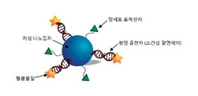 KAIST는 지난달 11일 생명과학부 박태관 교수와 연세대 화학과 천진우 교수팀이 암진단과 치료, 촬영이 동시 가능한 나노입자를 개발했다고 밝혔다. 자성을 띤 산화철 입자, 암세포를 추적하는 생체입자인 ‘펩티드(RGD)’, 암을 치료하는 ‘소간섭RNA(siRNA)’조각, 그리고 ‘형광물질’을 하나로 합해 암 진단 및 치료뿐만 아니라 자기공명영상(MRI)과 광학영상으로 관찰·촬영까지 동시에 할 수 있게 된 것. 이번에 개발한 기술은 암세포의 진단·치료·관찰이 동시에 가능하다는 점에서 지금까지 진단 혹은 치료만 가능했던 것과는 차별된다. 이 나노입자를 유방암 세포와 폐암 세포에 적용했을 때 고감도 암·진단이 가능했고, 입자에 부착된 siRNA는 암 치료를 성공적으로 수행했다는 것이 연구팀의 설명이다.