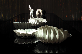 수조 위에 작품을 띄워 자연적인 요소로서의 물과 도자와의 조응을 시도했다.